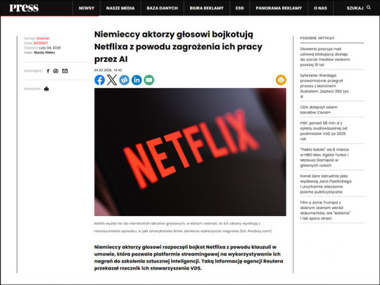 Niemieccy aktorzy głosowi rozpoczęli bojkot Netflixa z powodu klauzuli w umowie, która pozwala platformie streamingowej na wykorzystywanie ich nagrań do...