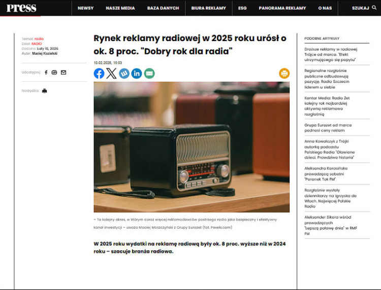 Tytuł: Rynek reklamy radiowej w 2025 roku urósł o ok. 8 proc. "Dobry rok dla radia"