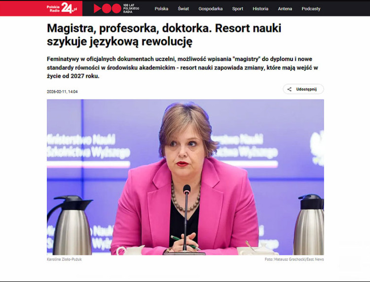 Jak naznaczyła w Studiu PAP, resort nauki ma świadomość, że zmiany językowe mogą budzić opór, dlatego proponowane rozwiązania mają mieć charakter dobrowolny. Feminatywy nie byłyby obowiązkiem, lecz możliwością wyboru. - Używam ich na co dzień jako wiceministra i sekretarzyni stanu. Nie niszczą języka, a sprawiają, że kobiety są widoczne w przestrzeni publicznej - podkreśliła.