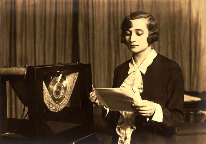 Janina Sztompkówna nadaje w eter w 1926r., fot. Archiwum Polskiego Radia
