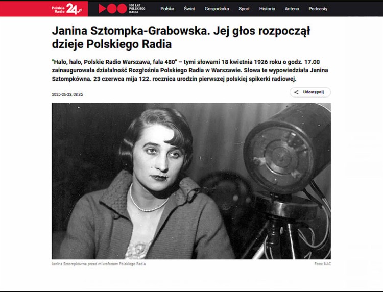 Janina Sztompka-Grabowska słowami "Halo, halo, Polskie Radio Warszawa, fala 480" zainaugurowała w 1926 roku działalność Rozgłośni Polskiego Radia - przypomina PolskieRadio24.pl.