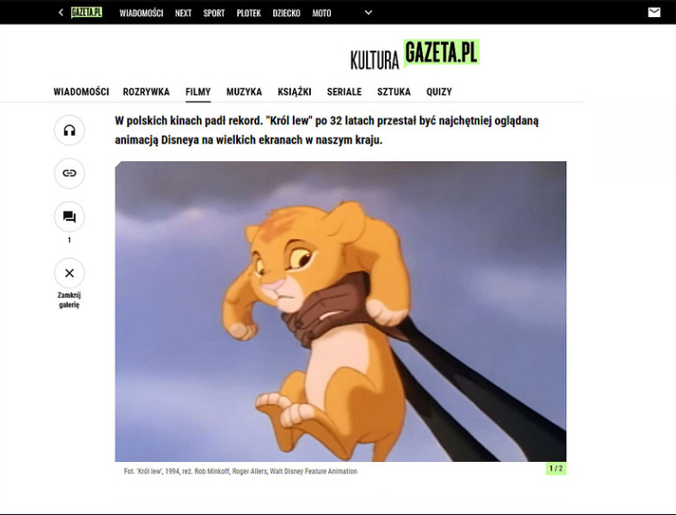 Tytuł: Po 32 latach "Król lew" zdetronizowany. W Polsce padł nowy rekord