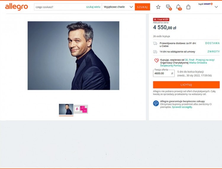 Dzwonki i alerty w Twoim telefonie mogą przemawiać miodowym głosem znanego aktora. Musisz jednak użyć - raczej mocnego - argumentu finansowego. Na Allegro trwa aukcja na rzecz WOŚP, a cena szybuje coraz wyżej.