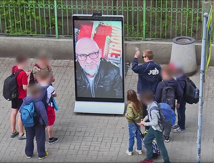 Okolica wybranego przejścia dla pieszych zostaje naszpikowana kamerami. Grzegorz Pawlak ma podgląd z wnętrza kabiny, a sam ukazuje się kierowcom na ulicznym monitorze.