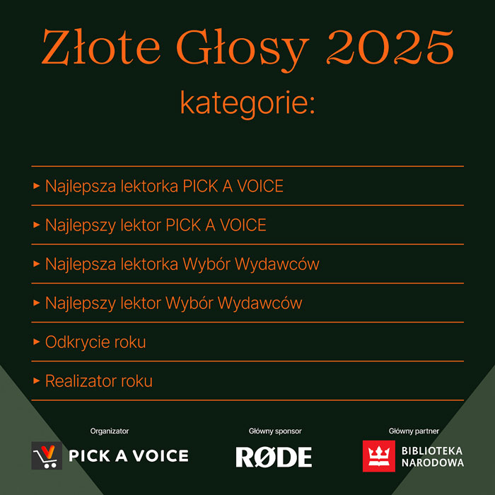 Bank głosów PICK A VOICE po raz kolejny podsumował miniony rok internetowym głosowaniem, które zaowocuje nagrodami dla najlepszych lektorek i lektorów audiobooków oraz realizatorów