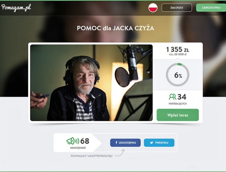 Ten stan zdrowia wyklucza go absolutnie z możliwości uprawiania zawodu, jak również z samodzielnego funkcjonowania. Także wcześniejszy system pracy bez etatu i nieopłacanie pełnego ZUSu wykluczyło go z możliwości otrzymania renty. Emerytura, o którą ubiegał się w tym roku, również jest bardzo mizerna. Jednak nie poddaje się i każdego dnia obdarowuje nas entuzjazmem, uśmiechem i dobrą energią. Dlatego zwracamy się z prośbą o wspomaganie Jacka, w miarę możliwości" - pisze Aleksander Orsztynowicz-Czyż, syn aktora.