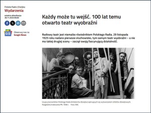 "Radiowy teatr jest niemalże rówieśnikiem Polskiego Radia. 29 listopada 1925 roku nadano pierwsze słuchowisko, tym samym teatr wyobraźni – a nie ma takiej...